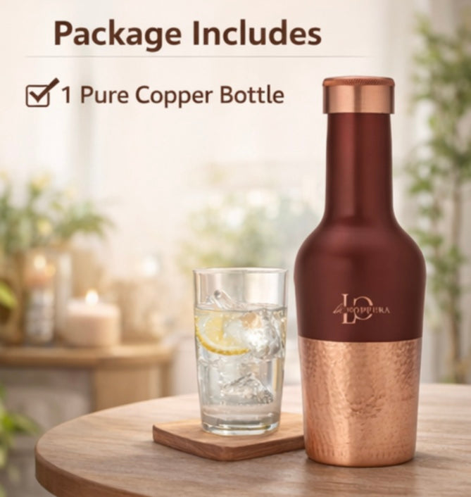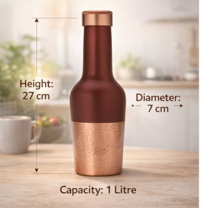 Made entirely of copper, it naturally alkalises water, supports digestion, boosts immunity, and enhances overall wellness—aligning your hydration routine with ancient Ayurvedic wisdom.