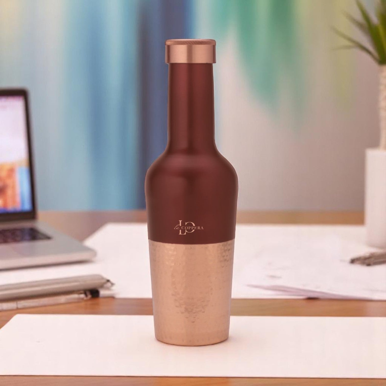 With its dual-tone finish—matte cocoa on top and hand-hammered copper below—Madira Coco blends contemporary styling with the timeless appeal of pure copper.