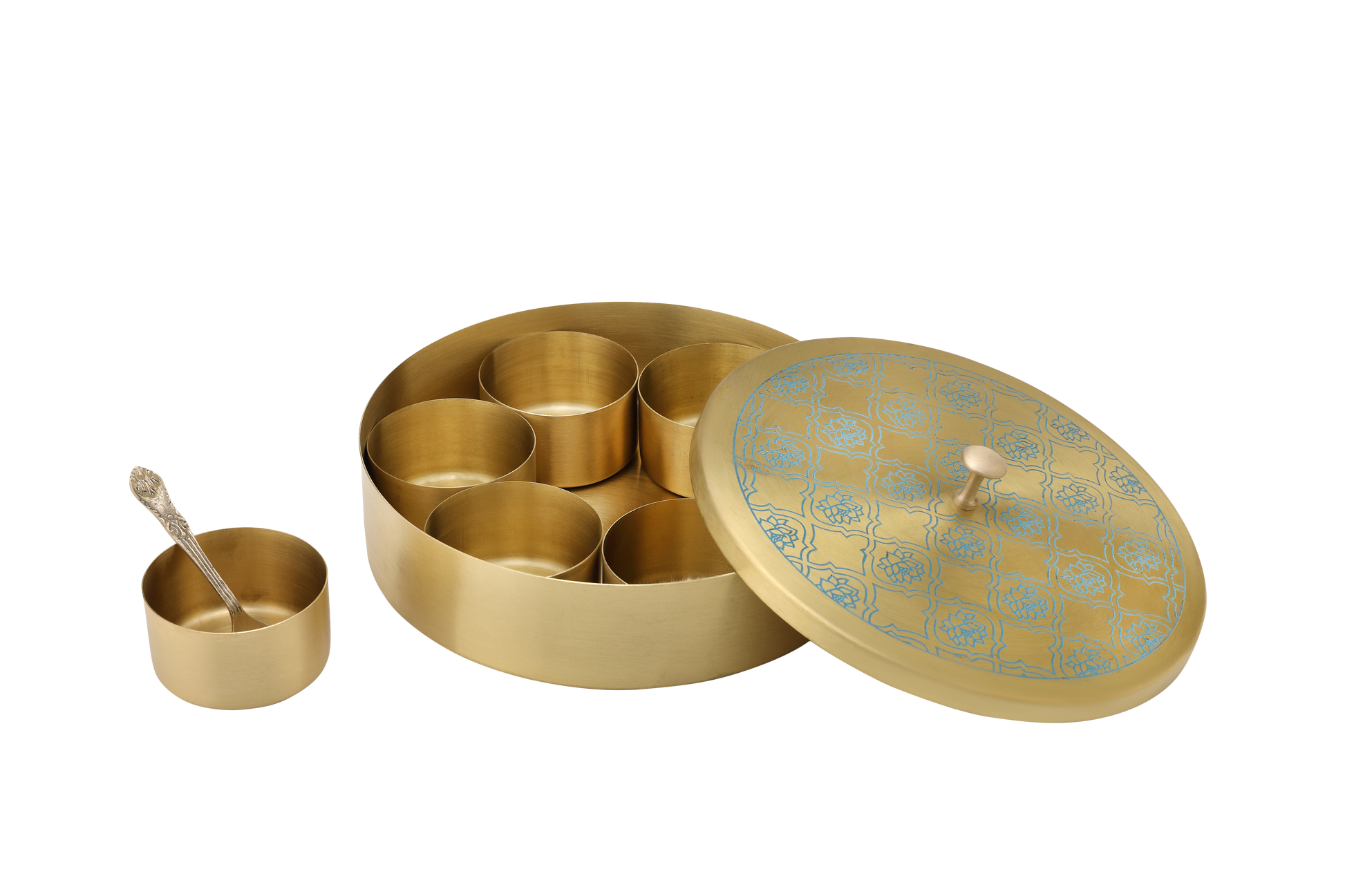 Graceful, spacious, and beautifully detailed, the Masala Box Etched 8" is designed to bring both organisation and artistry to your kitchen. Made from premium brass, it combines everyday utility with exquisite craftsmanship — making it a standout piece for any home that loves cooking with flavour and tradition.